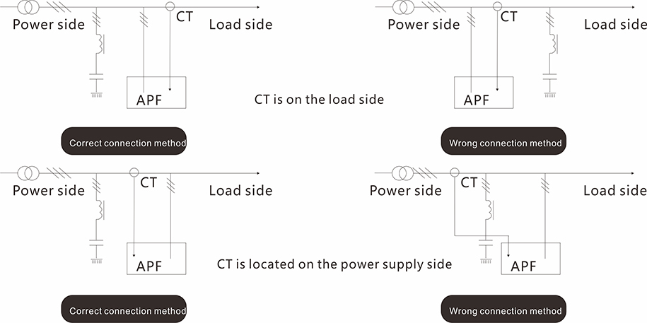 The CT current can not contain the current of the passive filter device when a parallel capacitor or a passive filter device has been installed in the field. Specific examples